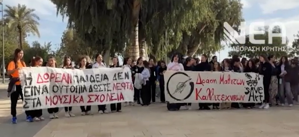 Στην Πλατεία Ελευθερίας βρέθηκαν σήμερα μαθητές, γονείς και εκπαιδευτικοί του Μουσικού Σχολείου Ηρακλείου, στέλνοντας ξεκάθαρο μήνυμα διαμαρτυρίας. Με μουσικά όργανα στα χέρια και συνθήματα, ζητούν άμεσες λύσεις στα χρόνια προβλήματα του σχολείου, όπως οι ελλείψεις σε καθηγητές και υποδομές. Όπως τονίζουν, ο πολιτισμός και η μουσική παιδεία δεν μπορούν να μπαίνουν σε δεύτερη μοίρα ενώ είναι αποφασισμένοι να συνεχίσουν τον αγώνα τους μέχρι να ακουστεί η φωνή τους.