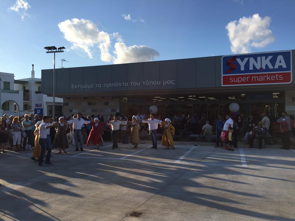 Με παραδοσιακούς χορούς, τραγούδια και παρουσία πλήθος κόσμου ανοίξε τις πύλες του το νέο υπερσύγχρονο  Super Market SYN.KΑ στην Τήνο σε ένα ιδιόκτητο κτίριο 1.500τμ.