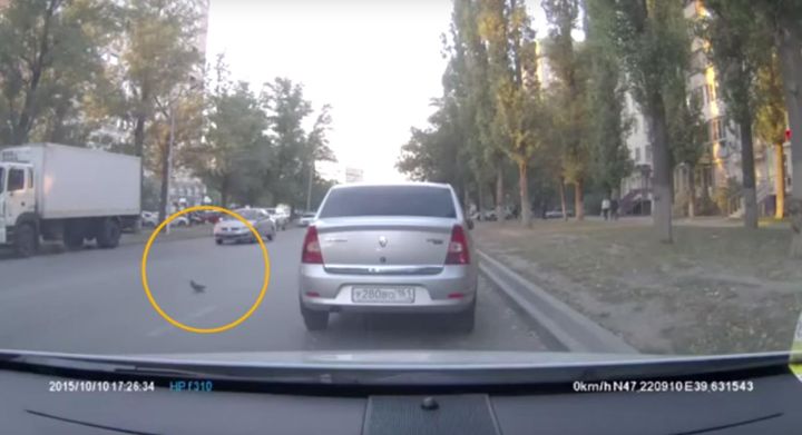 Θέλησε να διασχίσει το δρόμο, περπατώντας. Ένα περιστέρι στη Ρωσία προκάλεσε άθελά του τροχαίο ατύχημα, αφού ο πρώτος από τους εμπλεκόμενους οδηγούς φρέναρε για να μη το πατήσει.
