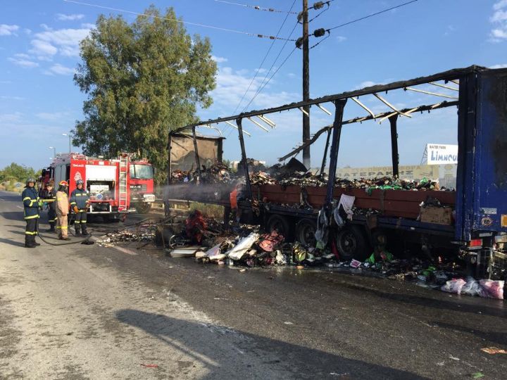 Σύμφωνα με πληροφορίες ο οδηγός της νταλίκας μόλις αντιλήφθηκε την φωτιά σταμάτησε στην άκρη του δρόμου