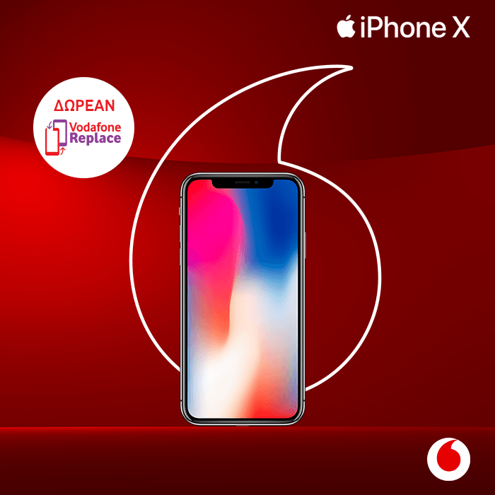Όσοι επιλέξουν τη Vodafone για να αποκτήσουν το νέο iPhone Χ θα αποκτήσουν ταυτόχρονα την υπηρεσία Vodafone Replace εντελώς δωρεάν για ένα χρόνο, η οποία δίνει τη δυνατότητα αντικατάστασης της συσκευής μέσα σε 24 ώρες, σε περιπτώσεις όπως: σπάσιμο συσκευής, κλοπή, επαφή με υγρό στοιχείο ή άμμο & αυξομειώσεις τάσης ρεύματος.