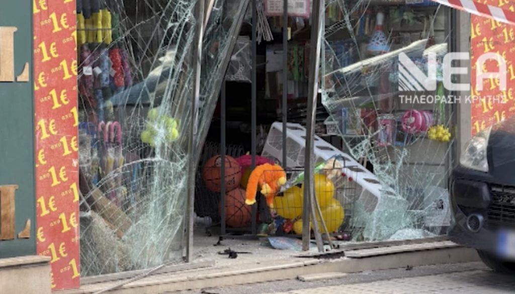 Βίντεο – Αυτοκίνητο έπεσε πάνω σε βιτρίνα καταστήματος στο Ηράκλειο