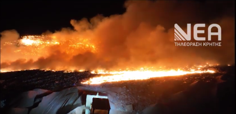 Βίντεο: Φωτιά στο Χώρο Υγειονομικής Ταφής της ΔΕΔΙΣΑ – Κανονικά η αποκομιδή απορριμμάτων