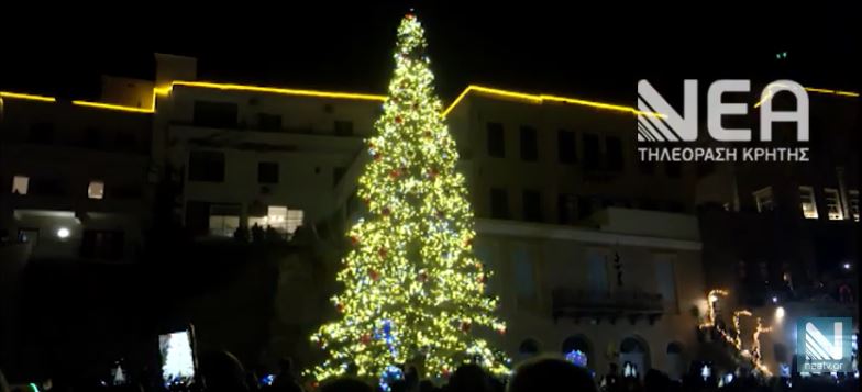Παρουσία πλήθους κόσμου το βράδυ του Σαββάτου πραγματοποιήθηκε η τελετή φωτοδότησης του Χριστουγεννιάτικου δέντρου στο ενετικό λιμάνι από τον Δήμο Χανίων.