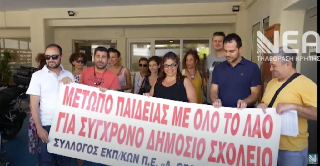 Βίντεο – Παράσταση διαμαρτυρίας από τους εκπαιδευτικούς για την “αξιολόγηση” στη διεύθυνση Πρωτοβάθμιας εκπαίδευσης Ηρακλείου