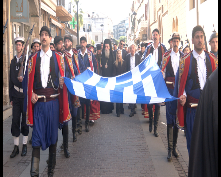 Με κάθε επισημότητα το πρωί οι καμπάνες της Μητρόπολης χτύπησαν χαρμόσυνα για να καλέσουν τον κόσμο στην πανηγυρική δοξολογία για τον εορτασμό της Ένωσης της Κρήτης με την υπόλοιπη Ελλάδα.