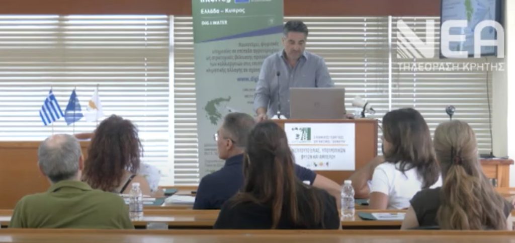 Ένα πρωτοπόρο διαδικτυακό σύστημα ελεύθερης πρόσβασης για αγρότες και τοπικές αρχές αναπτύσσει το Ευρωπαϊκό πρόγραμμα «DIG.I WATER» στο οποίο συμμετέχει και η Κρήτη. Στην διάρκεια της εναρκτήριας συνάντησης που πραγματοποιήθηκε το πρωί στο Ινστιτούτο ελιάς, υποτροπικών φυτών και αμπέλου στα Χανιά τονίστηκε πως οι χρήστες θα μπορούν μεταξύ άλλων να ενημερώνονται για τις πραγματικές αρδευτικές ανάγκες των καλλιεργειών τους, για τα χαρακτηριστικά του εδάφους αλλά και για επικείμενα ακραία καιρικά φαινόμενα.