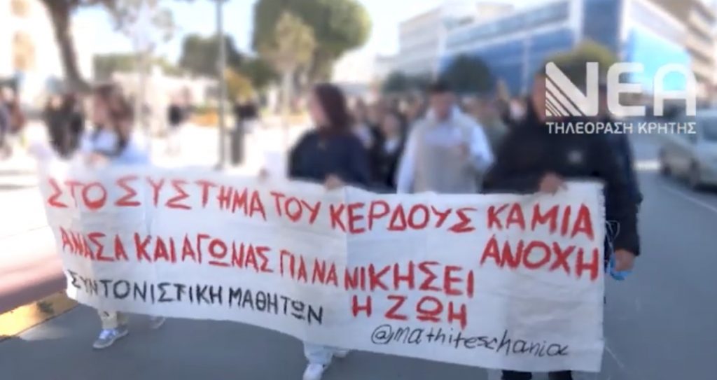 Στους δρόμους βγήκαν σήμερα δεκάδες μαθητές στα Χανιά εκφράζοντας την πικρία και τον προβληματισμό τους για την τραγωδία στα Τέμπη, όπου πολλοί νέοι έχασαν τη ζωή τους σε ένα από τα σοβαρότερα σιδηροδρομικά δυστυχήματα της χώρας. Με πανό, συνθήματα και ενός λεπτού σιγή στη μνήμη των θυμάτων, οι μαθητές απηύθυναν ξεκάθαρο μήνυμα για ανάγκη ουσιαστικών μέτρων ασφάλειας στις μεταφορές, αλλά και για σεβασμό στη ανθρώπινη ζωή.
